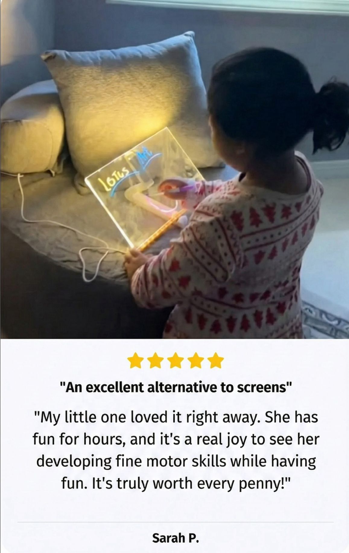 Watch their drawings light up with LED light, transforming every sketch into a true glowing masterpiece.
